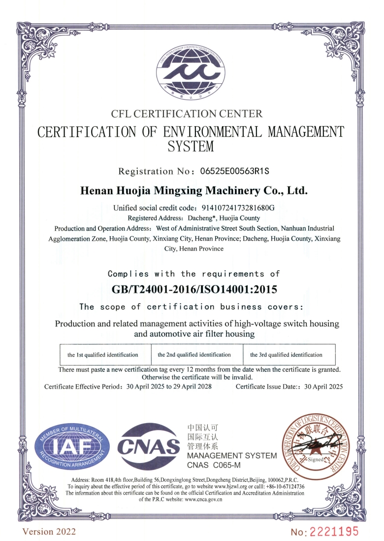 環境管理體系證證書