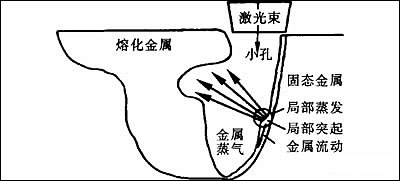 在焊接大厚度鋁合金時,傳統的焊接方法根本不可能單道焊透,而激光深熔焊時形成大深度的匙孔,發生匙孔效應,則可以得到實現。圖1為激光焊接時的小孔形狀。圖2為激光深熔焊示意圖。